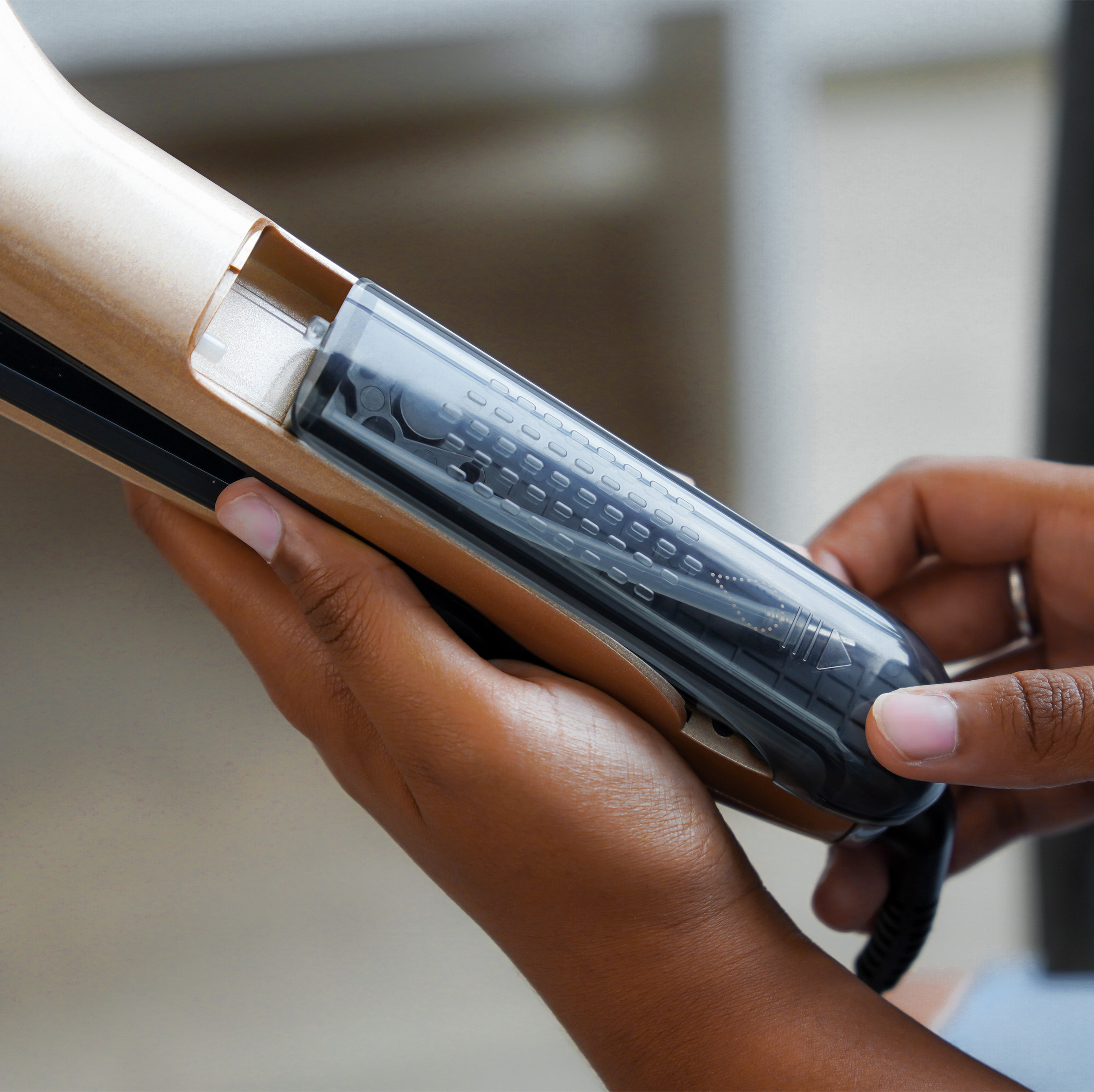 – 40 ml-es tartállyal felszerelve, víz és hajszérum hozzáadásával.