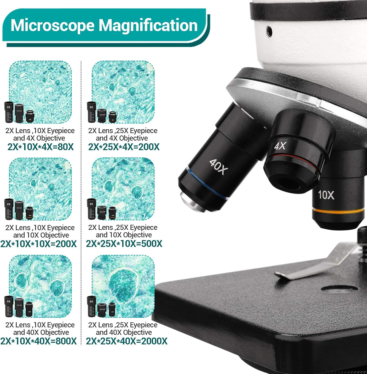 Ez a 40X-2000X biológiai mikroszkóp segít felfedezni a diákok/gyermekek/felnőttek/amatőr tudósok/hobbik fantasztikus élettudományi világát. Ideális iskolai, laboratóriumi vagy otthoni oktatáshoz.